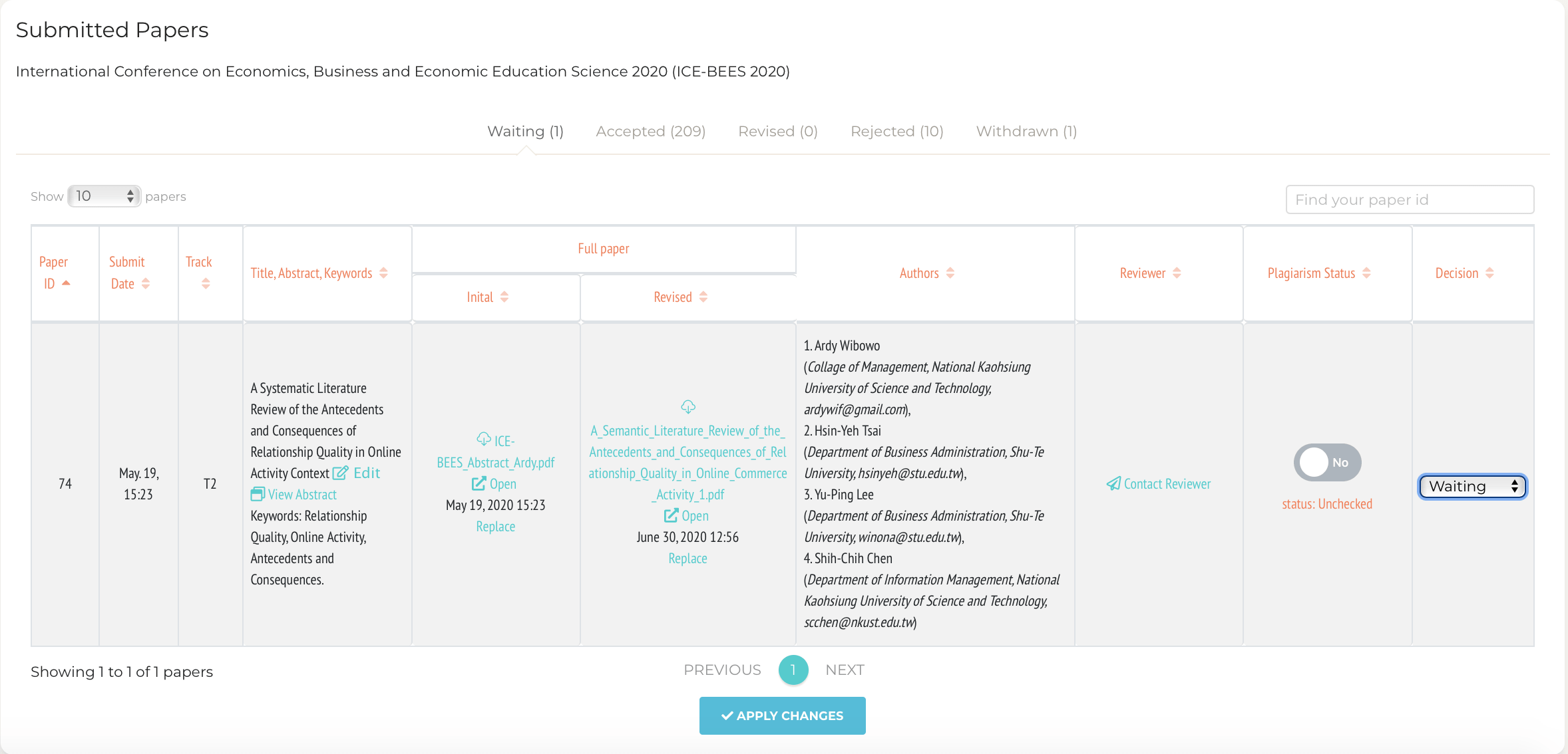 Easily manage conference, submitted papers, reviewer invitations, Letter of Acceptance, and more!